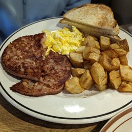 This place really hit the spot. The staff is really friendly and the food was great. The seating could almost pass for a 50s diner. I had the Denver Omelette, STUFFED with veggies, ham chunks and cheese. Almost didn't finish it. Country Fries was a little too done, but they were still good.