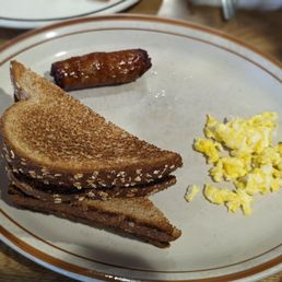 I have passed this place many times and have gone into a few of the businesses in this plaza but have overlooked Dublin Skillet, most likely because the place is more of a breakfast spot and closes early. My daughter and I had breakfast here and it is cozy inside with large U booths and smaller tables that sat 2. The coffee wasn't great, however I do enjoy diner coffee in that white mug and will drink it. I had eggs with a meat patty and toast. My daughter had a Belgian waffle. It was kind of expensive - $36 for both items and my coffee. Service was great and attentive but it seemed like what we got and the price we paid sort of didn't match. I would still come back and try other entrees.